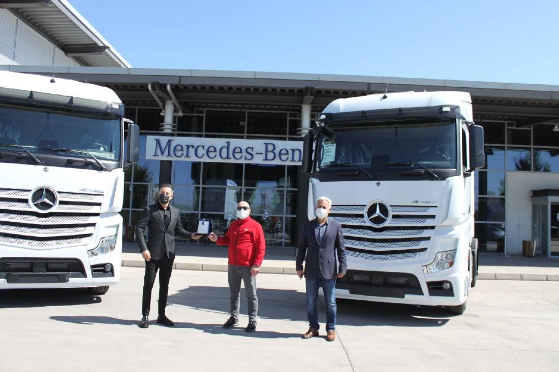 Mercedes-Benz Finansman Türk A.Ş kredi desteğiyle Mercedes-Benz Türk Yetkili Bayii Koluman İstanbul tarafından yapılan satışın ardından Mercedes-Benz Aksaray Kamyon Fabrikası’nda gerçekleştirilen teslimatta; Aslantürk Lojistik Yönetim Kurulu Başkanı Nurettin Aslantürk ve Aslantürk Lojistik Bölge Müdürü Zeki Aslantürk araçlarını, Koluman İstanbul Kamyon Satış Müdürü Aytekin Yeşil’den teslim aldı.