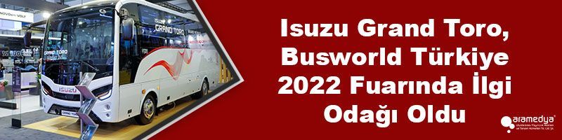 Türkiye’nin ticari araç markası Anadolu Isuzu’nun 26-28 Mayıs 2022 tarihlerinde Busworld 2022 fuarında sergilediği Grand Toro modeli ziyaretçilerin büyük ilgisiyle karşılaştı. Busworld Türkiye 2022 fuarında Anadolu Isuzu standında alternatif CNG yakıtlı KENDO / Interliner, tam elektrikli NovoCITI Volt ve Citiport 12 modelleri ile birlikte sergilenen Grand Toro, işletmecisine, sürücüsüne ve yolcularına sunduğu konfor, ekonomi, güvenlik avantajları ile yerli ve yabancı fuar katılımcılarının ilgi odağı oldu.