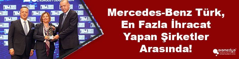 Türkiye’de 2020 yılında en fazla ihracat yapan ilk 10 şirket arasında yer alan Mercedes-Benz Türk, Türkiye İhracatçılar Meclisi’nin düzenlediği 28. Olağan Genel Kurulu ve “2020 İhracat Şampiyonları Ödül Töreni”nde ödülüne kavuştu. Cumhurbaşkanı Recep Tayyip Erdoğan tarafından takdim edilen ödülü Mercedes-Benz Türk adına Mercedes-Benz Türk Finans ve Kontrolden Sorumlu İcra Kurulu Üyesi (CFO) Tülin Mede Esmer teslim aldı.