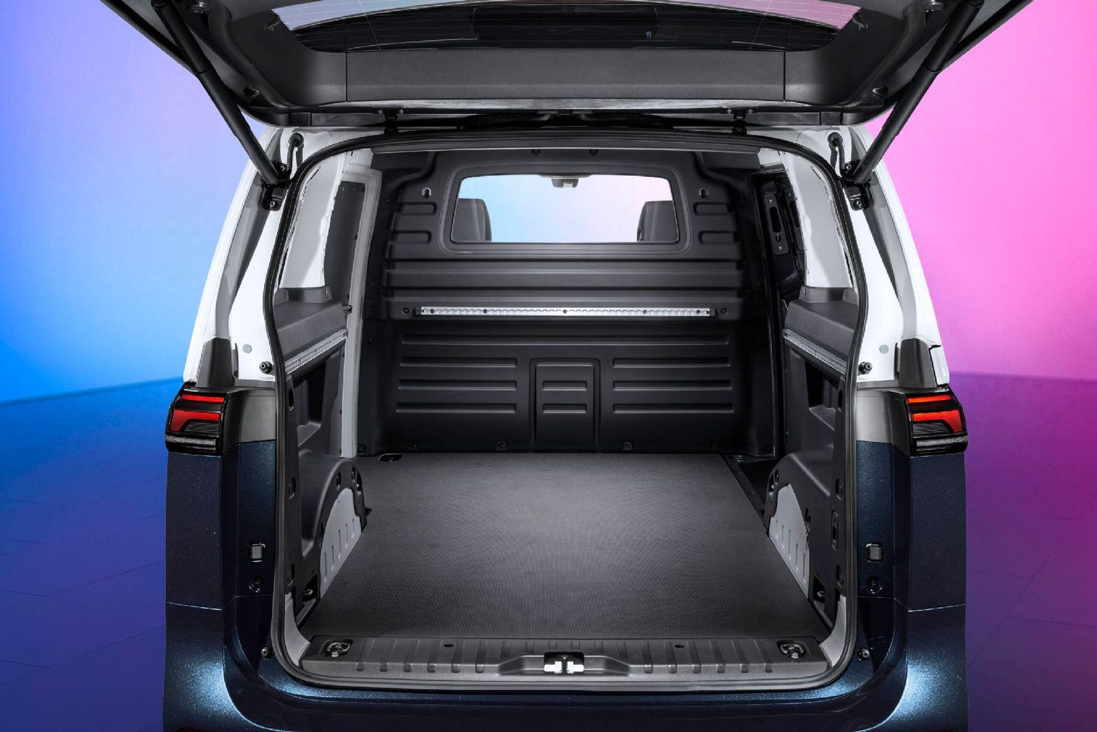 ID.Buzz, sürücü ve yolcularına, geniş tasarımlı iç mekanıyla son derece ferah bir ortam sunuyor. 5 kişilik versiyonda yolcular son derece rahat seyahat edebiliyor ve eşyaları için de 1.121 litrelik bagaj alanından yararlanabiliyor. İkinci koltuk sırası yatırıldığında bu yük kapasitesi 2.205 litreye kadar çıkabiliyor. ID.Buzz Cargo müşterinin tercihine göre önde iki veya üç koltuk seçeneği ile sunuluyor. Aynı zamanda 3,9 m3’lük kargo alanını ayıran sabit bir bölme de bulunuyor.