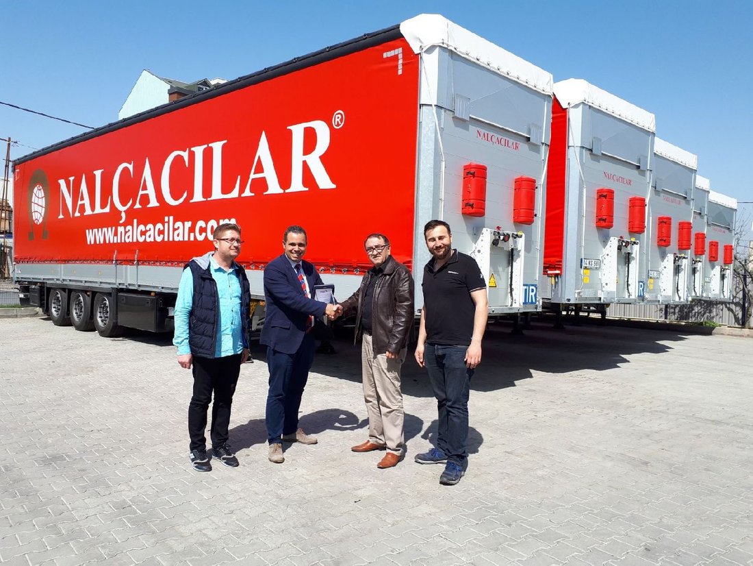 5 adet SCS Mega Varios perdeli treylerin teslimat töreninde konuşan Nalçacılar Uluslararası Nakliyat Yönetim Kurulu…