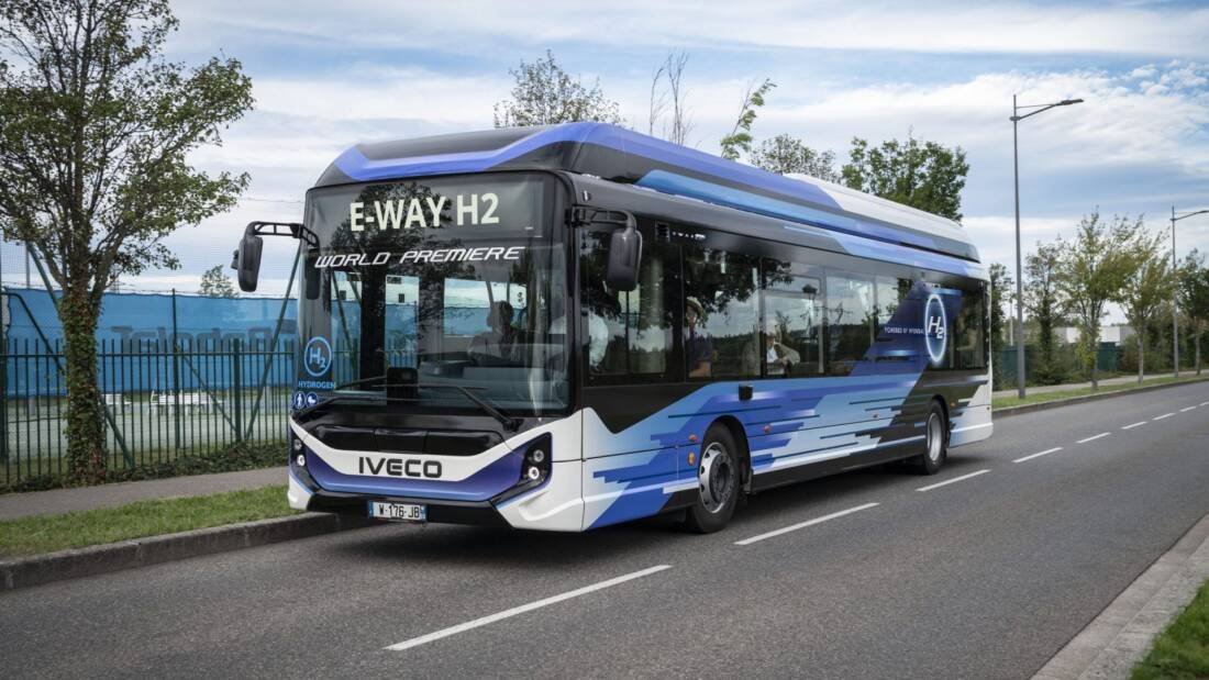 Up to seven time less batteries than a BEV bus (one module instead of 7), with 15% more passengers. These are the specifications mostly stressed by IVECO BUS when outlining the features of IVECO BUS E-WAY H2, presented at Busworld 2023 in Brussels. The bus model derives directly from the E-WAY BEV bus model and integrates the fuel cell technology of the South Korean multinational Hyundai Motor Company, represented by HTWO. IVECO BUS E-WAY H2 is a finalist for the Sustainable Bus of the Year 2025 award, whose winners will be announced at FIAA in Madrid on October 22, 2024.